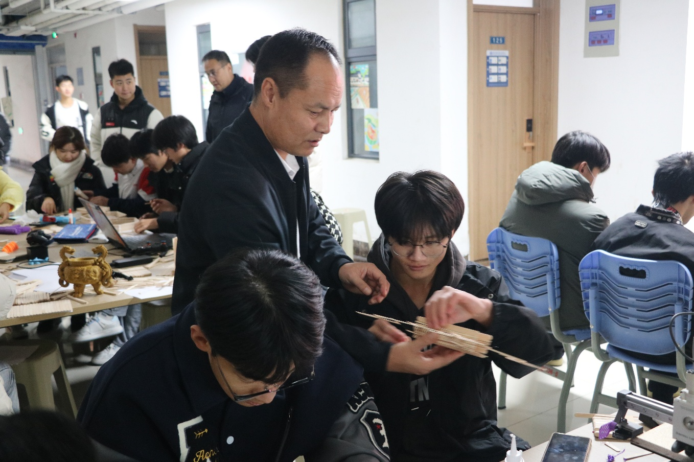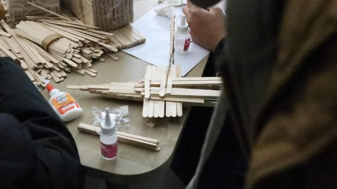 2024 年 11 月 28 日,智能装备学院提前布置好现场,并准备了A4纸、雪糕棍、白乳胶、手锯等手工材料等待同学们的到来,同学们在活动开始前陆续进场进行活动签到,并耐心听取主持人详细的讲解活动规则。