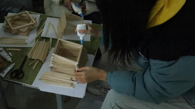 主持人宣布活动正式开始,同学们根据自己队伍的喜爱和创意,开始动手搭建3D建模原型,同学们充分发挥创新思维与专业技能,运用 3D 建模软件和雪糕棍,精心设计出一个个独具匠心的作品。从精致的机械零件到富有创意的生活小物件,无不展现出选手们扎实的专业功底与无限的创意潜力,活动如火如荼的开展。在3D建模搭建过程中,同学们不仅体验到了竞争的激烈,更在潜移默化中加深了对3D打印技术的认识,同学们也加深了彼此之间的了解和友谊。