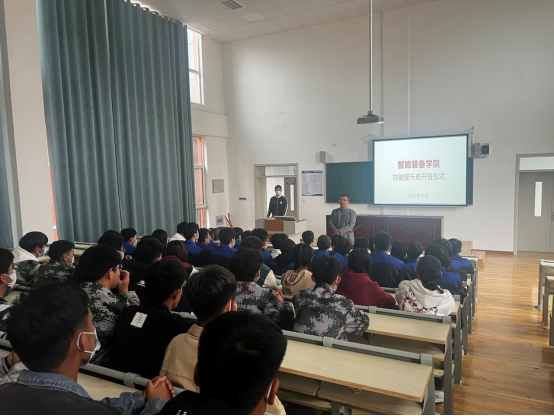 2022年10月16日8868体育“数控技能提升班”在教学楼3-306报告厅举行开班仪式,智能装备学院院长安丰金及数控技能指导教师张建楷、李金鹏出席,全体数控提升班学生参加此次开班仪式。