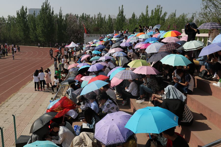 即使烈日暴晒, 即使酷暑难耐, 8868体育同学们仍然坚持在看台上, 他们的加油 声震耳欲聋, 响彻云霄。 他们的呐喊伴随着隆隆的鼓声, 回响在风雨操场的上空。